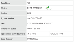 Dimensions du sac 800 x 1150 mm